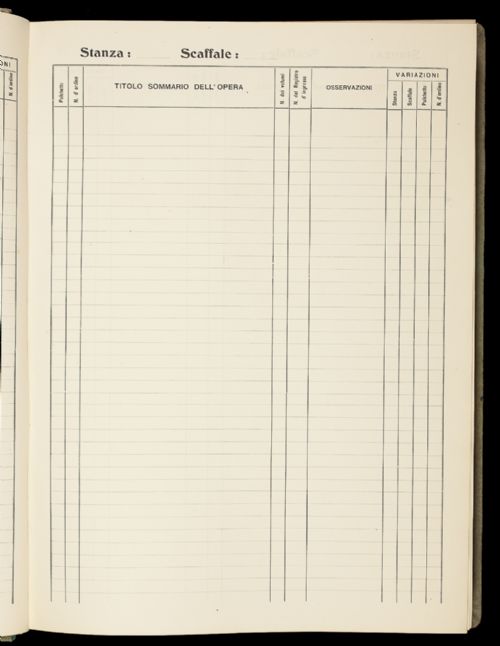 | Contenuto | Elenco dei volumi conservati nella Biblioteca dell'Accademia relativamente allo scaffale XLII (dono di Gino Capponi), scaffale XLIII (dono di L.M. Rezzi) e della Stanza dei Citati, la cui pubblicazione non va oltre l'anno 1921. |