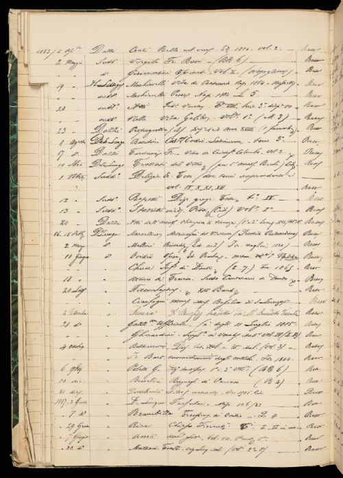 | Contenuto | Registro degli Accademici che hanno avuto prestito dalla Biblioteca dell'Accademia opere e opuscoli per loro studi dal 1852 al 1902. |